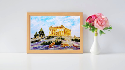 Parthenon, Acropolis Original Embossed Acrylic Painting on Canvas - Greek Ancient Monument Painting, Art Deco, Original 100% Hand Painted. €47.00